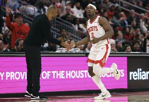 本场比赛,火箭球员泰特表现一般,虽然场上依旧积极能抢,有4个篮板都是前场篮板,但投篮手感很差,替补出战9分半,投篮5中1,三分球1中0,罚球2中2,拿到4分4篮板1抢断,正负值-5。