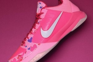 这双Kobe 5 PE “Jordyn”顾名思义,灵感来源于他的女儿Jordyn,而配色和爱心图案则是取自他女儿的一件衣服图案,球鞋的后跟还有女儿的出生日期。