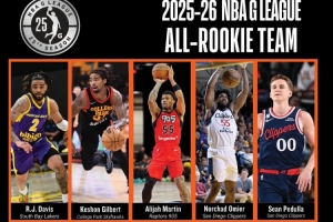 体育资讯4月8日讯 今天,NBA发展联盟官方公布了25-26赛季最佳新秀阵容。